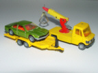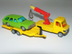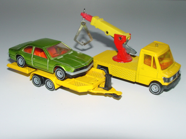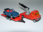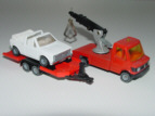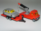 Maßstab: ca. 1/55 Produktion: 1979 - 1990 Varianten: Zugfahrzeug gelb oder rot/schwarz; Anhänger rot/gelb oder rot/schwarz; unterschiedliche PKW letzte Varianten mit #2526